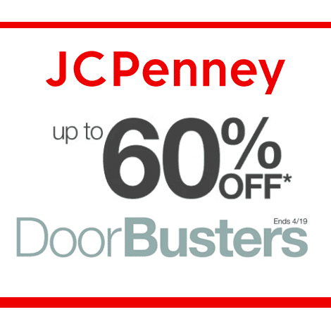 Take up to 60% off doorbusters at JCPenney! Hurry, sale ends 4/19!