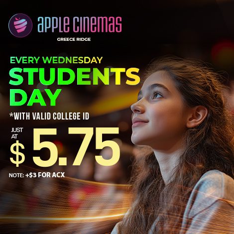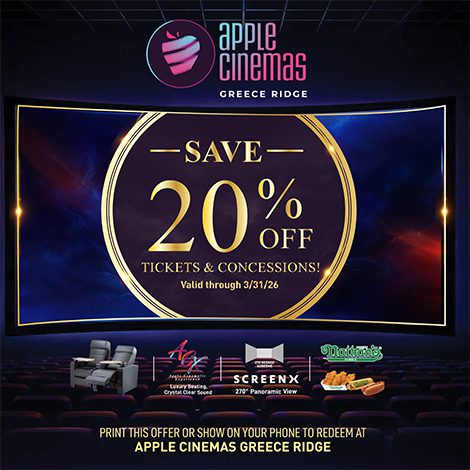 - Visit Apple Cinemas website for showtimes: -