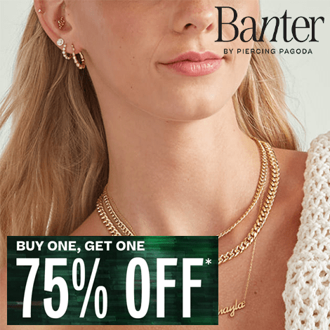 Located between Entrances 6 and 7. It’s time for a change. Banter by Piercing Pagoda has the same incredible quality, variety and customer service you’ve come to expect from Piercing Pagoda with a fresh look and vibe. Our fine jewelry is made with real 10-14k gold or sterling silver.