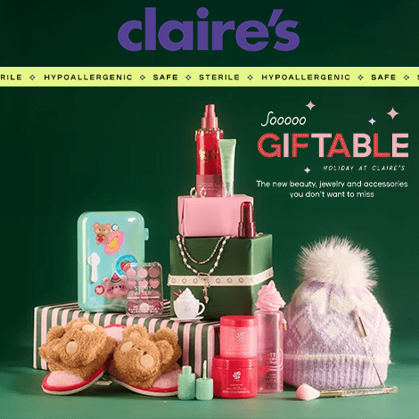 Located near Entrance 9, near the children’s play area. Claire’s is a global brand powerhouse for self-expression creating exclusive curated and fun looks with innovative jewelry, hair, cosmetics, and fashion accessories. Claire’s is THE world’s leading piercing specialist having pierced over 100 million ears worldwide. Visit Claire’s today to accessorize your unique style. Claire’s…We make memories.